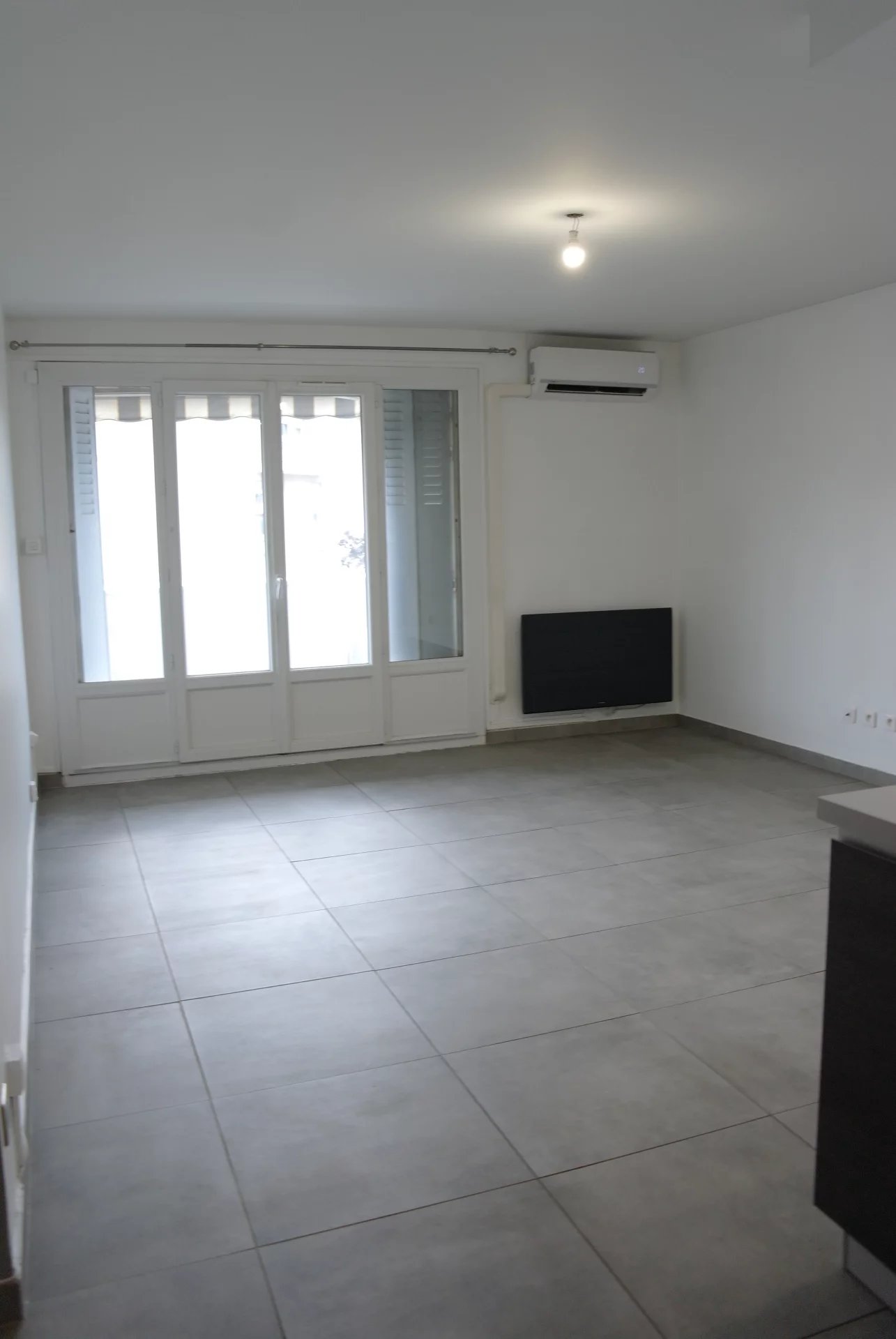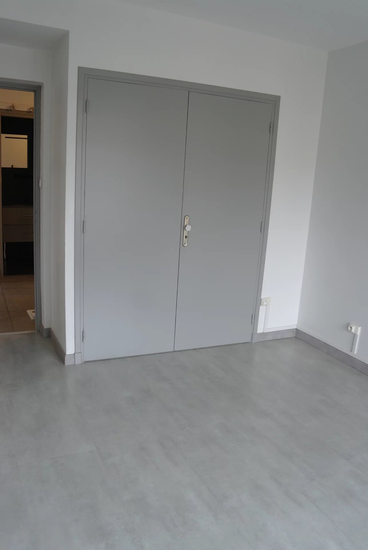 L’appartement se compose d’une grande entrée de 8.58m². Un séjour/cuisine équipée de 30.76 m² ouvrant sur le balcon. La cuisine est équipée de meubles hauts et bas, plaque de cuisson, four, four micro-ondes, hotte, ilot central avec placards de rangements. Le séjour/cuisine dispose d’une climatisation.